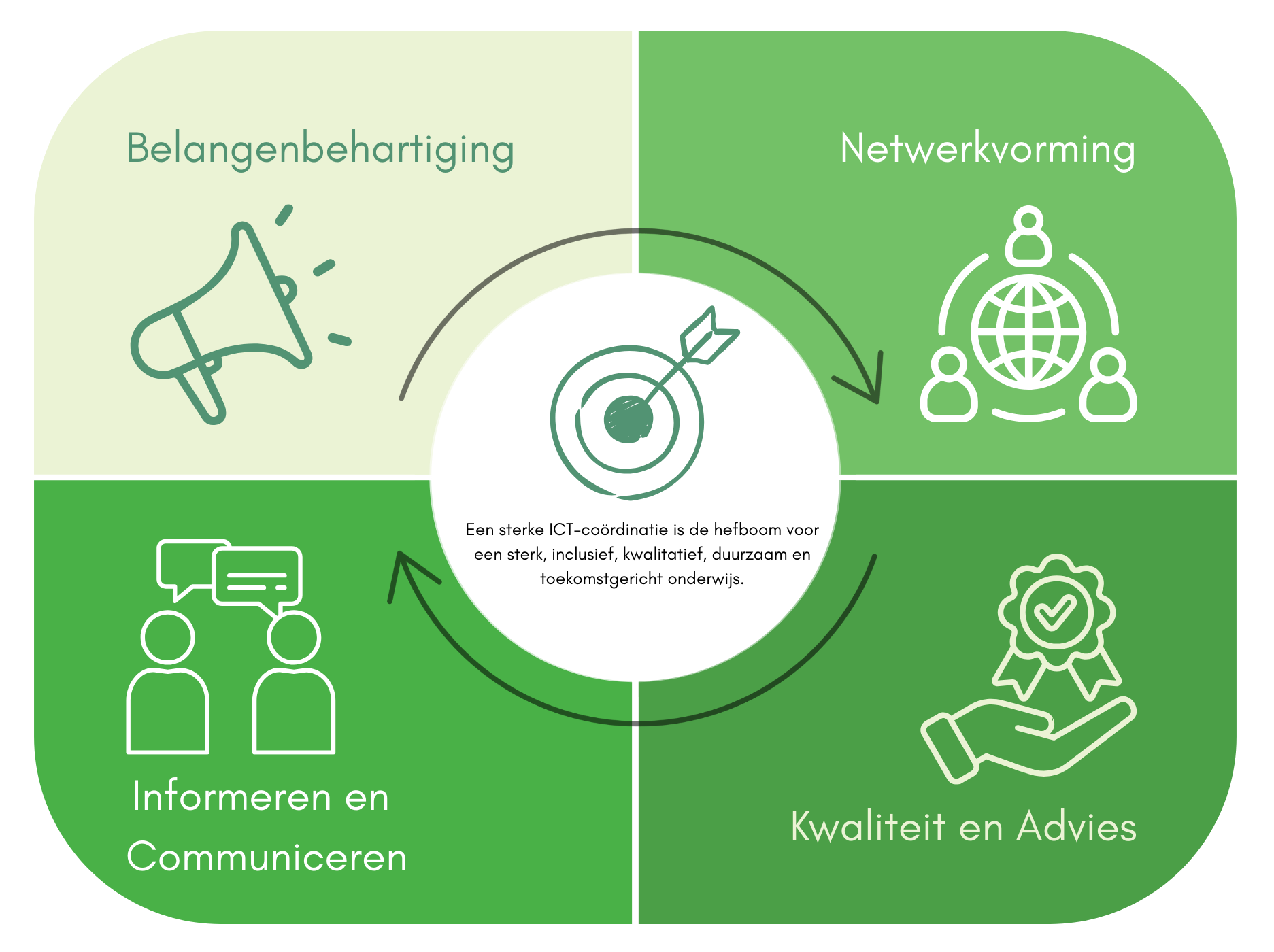 Leden en andere stakeholders informeren via duidelijke, transparante communicatie en de zichtbaarheid van ICT‑coördinatoren in het onderwijslandschap vergroten.